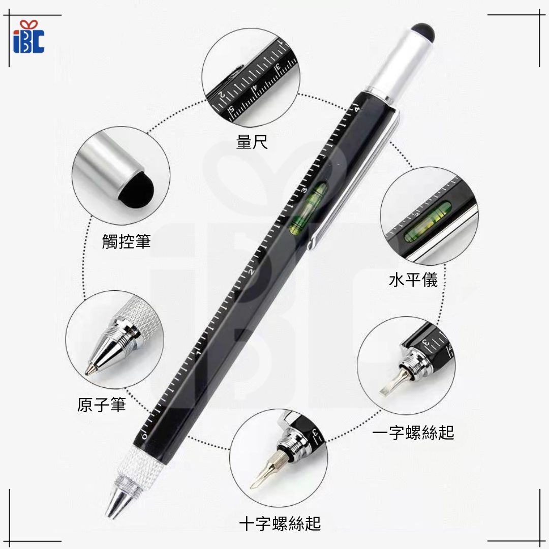 一筆多用,具備圓珠筆、觸控筆頭、量尺、水平儀、一字螺絲起、十字螺絲起,多項實用工具,讓您在不同場合都能輕鬆應對。