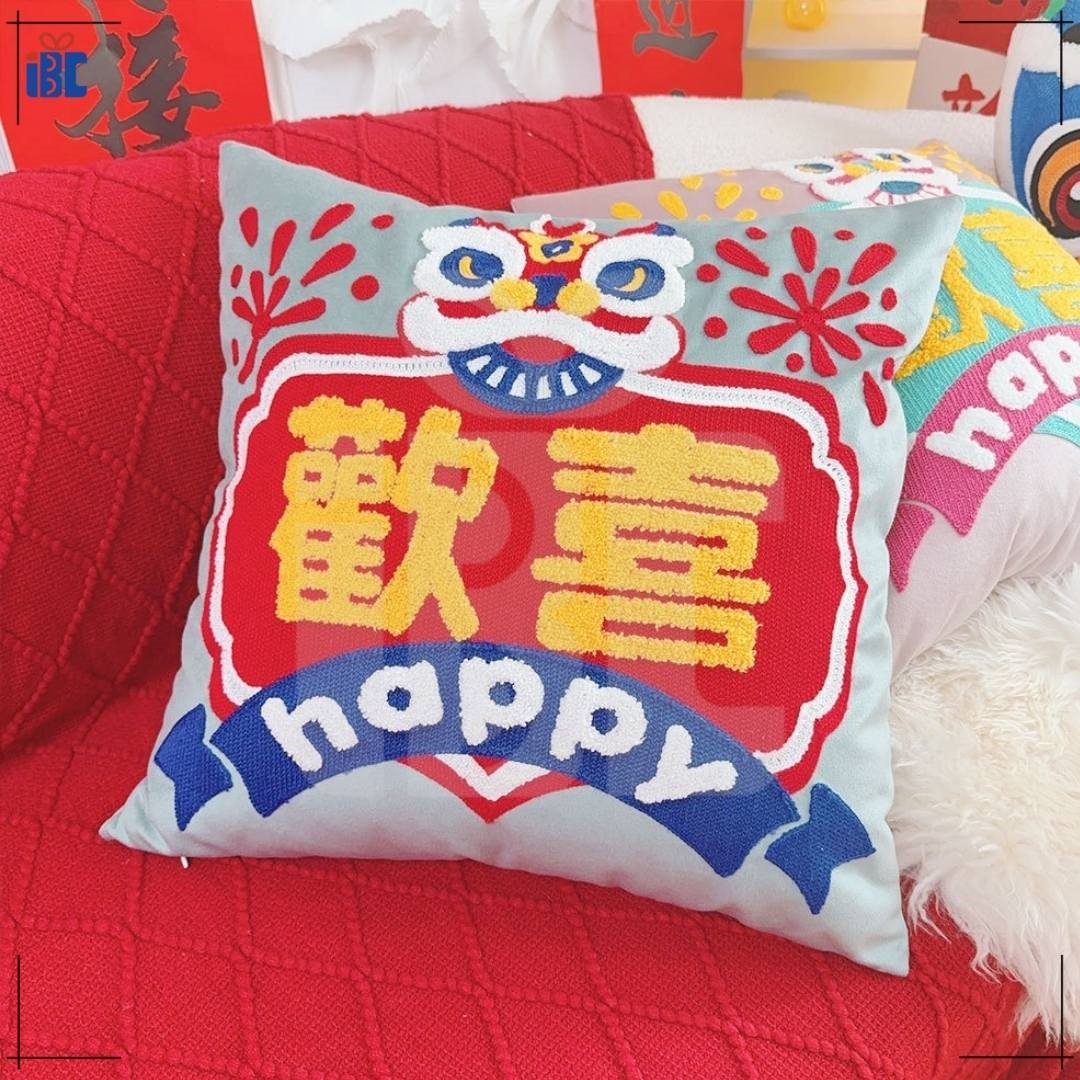 節慶方形刺繡抱枕
