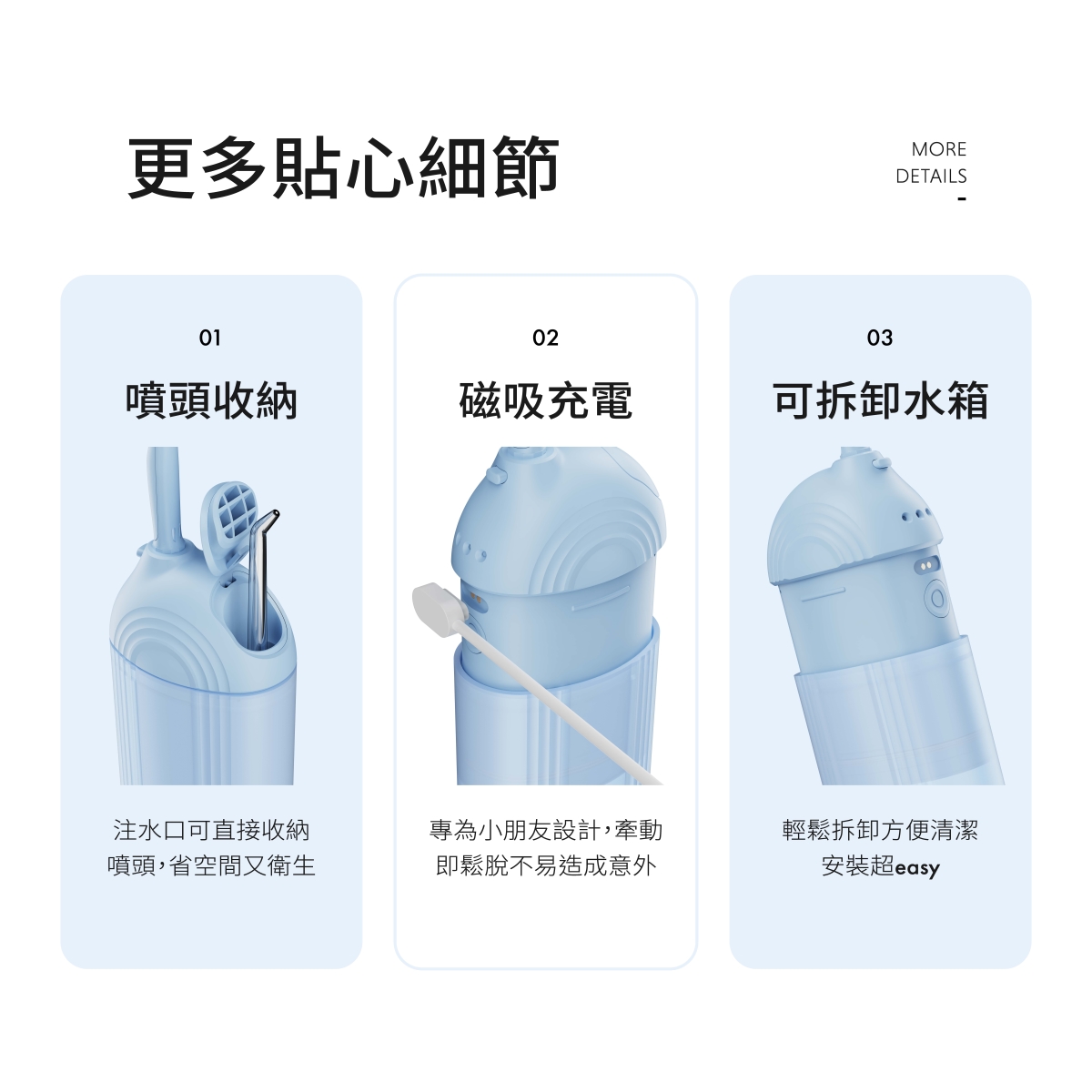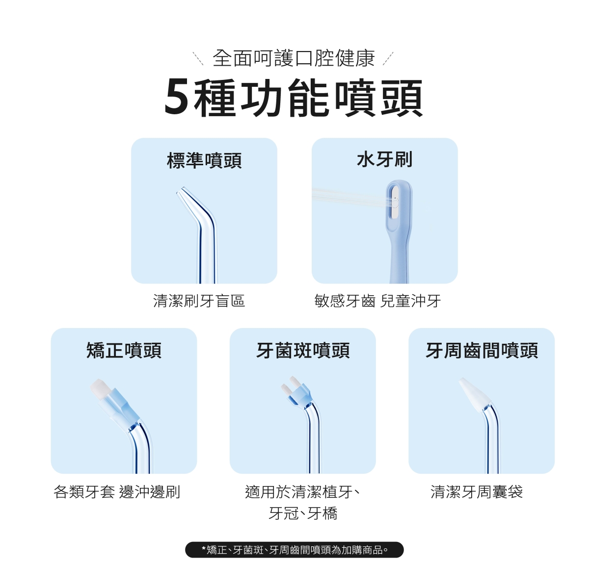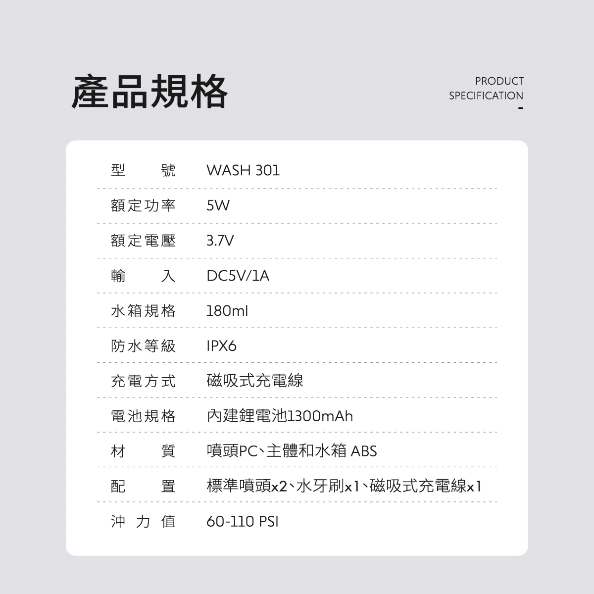 ◆配件:標準噴頭x2、水牙刷x1、磁吸式充電線x1